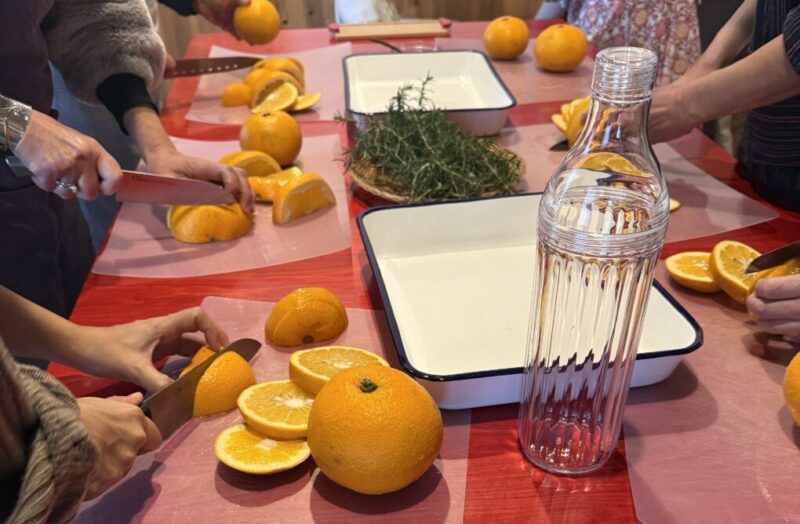 午後からは椿から少し離れて…いえ、離れてないかもしれません。島の柑橘を使ったワークショップです。伊豆大島は現在、温暖化によって一大産業の椿の生息域が徐々に離れつつあります。