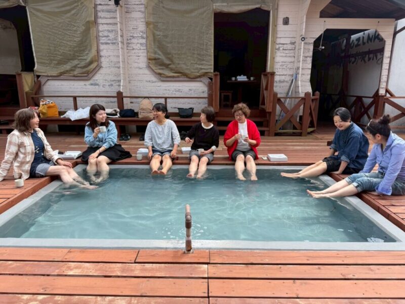 更にランチをとるグリーンホテルたかたは、高田製油所さんが収穫のためにつくった美しい椿園の中にあるホテル。椿という防風林の特性を生かし、少し樹高を高めにして根本には明日葉や葉蘭のような日陰を好む中背の植物が植えられています。観賞用に人の背丈に合わせた椿とはまた違った「自然のままの椿の森」の風情が感じられるという意味で、ぜひ楽しんでいただきたくピクニックランチとしました。今回は森の中にある屋外プールに足湯のご用意もありますよ!